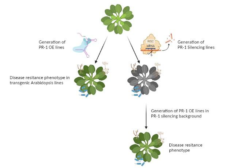 This research project aims to characterize the in planta activity of the PATHOGENESIS-RELATED PROTEIN 1 (PR-1). PR-1 played a pioneering role in discovering plant innate immunity 50 years ago as it was demonstrated that plants accumulate Pathogenes-Related (PR) proteins upon pathogen attack. The most prominent among these proteins was PR-1, which also displayed in vitro antimicrobial properties. PR-1 is a CAP protein (cysteine-rich secretory protein, antigen 5, and pathogenesis-relates) sharing a conserved CAP domain of approximately 150 amino acids. Despite the importance of these proteins, the biochemical function of PR-1, and CAP proteins, remained elusive for decades. However, during this time, PR-1 has become one of the most referred to proteins in many different pathosystems, and its expression is one of the most studied during plant-pathogen interaction. Recently, it was demonstrated that CAP proteins, so does PR-1, are sterol-binding proteins and that the mode of action of PR-1 is to sequester sterols from pathogen’s membranes. The discovery of the in vitro biochemical function and mode of action of PR-1 is the motivation to revisit the in planta activity of PR-1 using updated technology in molecular biology. To this end, we propose to 1) generate gain-of-function and loss-of-function transgenic Arabidopsis lines and 2) test these lines for phenotypic effects of PR-1 manipulation on disease resistance against various notorious plant pathogens. The proposed research will contribute to determining the role of PR-1 in plants and may be the basis for further research. Finally, these results are potentially relevant beyond PR-1 and plant science since some CAP proteins are implicated in mammalian immunity, and future experimentation may be relevant to plant protection and medicine.